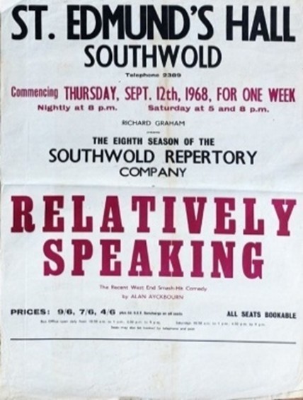 By the 1960s, summer repertory theatre had become a defining feature of Southwold life. Richard Graham’s 1962 season opened with The Amorous Prawn, and by 1968 the Hall hosted Alan Ayckbourn’s breakthrough hit Relatively Speaking. With repertory theatres closing in nearby towns, Southwold became the last Suffolk seaside town to maintain a summer season.